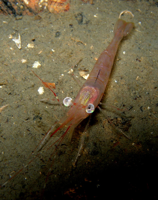 Mange fine rejer på mudder bunden og et par meget store troldkrabber blev også set og næsten forvekslet med russerkrabber.