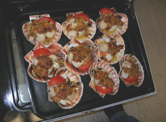 Som vanligt diskede Bent op med en fest middag godt hjulpet af Torben og Lars. Vi fik de dejlige kammuslinger til forret gratineret med diverse grønsager, ost og olie. Hovedretten var lam med bagt kartoffel ala Torben med en dejlig salat med tomat pesto og noget grønt stads. For dem der kunne spise mere var der lige lidt is til den søde tand. Der var også almindelig uddeling af Amarone vine og en lille diskussion om hvilken der var var bedst.