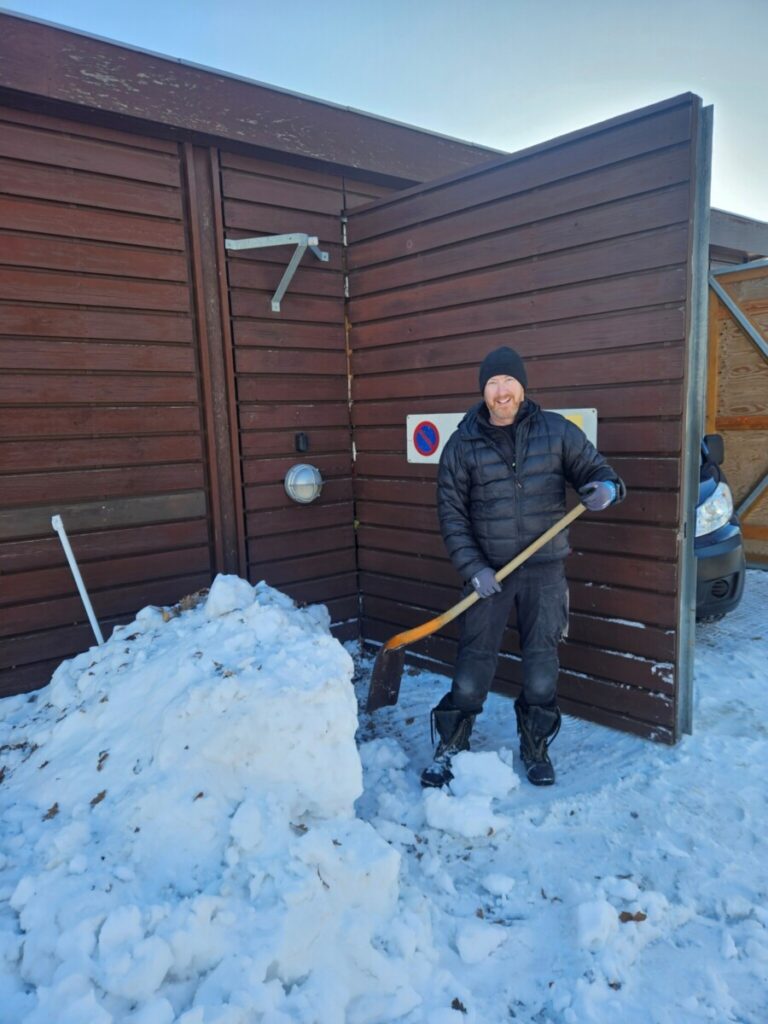 Anders var kommet lidt før mig og havde allerede flyttet et par kubikmeter sne foran garagen – men det var ikke helt nok så jeg hjalp sådan en smule symbolsk inden vi kunne få bilen ud.