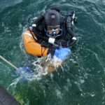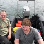 Eisfish, Stenfragteren og Mirs Vrag Langtur lørdag, så det var med at være hurtig på mailen, da turen blev annonceret, for pladserne er jo få, når vejret er godt! Nu går verden jo ikke i stå bare fordi der er en dykkertur, der er jo altid et eller andet sted, hvor man kan føle sig uundværlig, så til trods for, at jeg var den første, kom jeg alligevel sidst! Jeg var tidligt oppe ved svømmehallen for at toppe flaskerne, og derefter skulle jeg et smut forbi jobbet, for at gøre min pligt! Jeg var tilbage ved svømmehallen kl. 9:00, og min status var ændret fra duks til den der kommer for sent næsten! Vi kom af sted kort efter, men vi skulle først lige ha en snak med andetholdet, der skulle med gummibåden i Øresund. De skævede op på flaget ved svømmehallen, der blafrede lidt for lystigt i vinden. Jeg havde heller ikke set den friske vind i prognoserne, men det var måske kun inde over land, så vi troede (vi lærer det aldrig) stadigvæk på det! Turen til Gilleleje var lige så begivenhedsløs, som den var lang, men det er jo heller ikke så galt endda, for begivenheder på transportetaper er næsten altid noget med reparationer! I Gilleleje var vejret en anelse uldent, vi kunne sejle, men langfart blev det vist ikke til, så til PPPs store fortrydelse lod vi dunkene med ekstra benzin blive på land, men vi havde nok alligevel ikke haft plads til dem, for vi havde 3 biler fyldt med lort, der skulle stuves i vores lille båd. Når jeg ser Havgassen læsset til bristepunktet kan jeg ikke la vær med at tænke på overvejelserne om en ny RIB, der skulle øge vores aktivitetsniveau. INGEN Rib vil kunne ta udstyret fra bare 4 Havbasser, og slet ikke hvis de skal ha forplejning med! Vi kom af sted, og målet var Eisfish, hvor fiskelykken plejer at være ok, og denne dag var der flere mordere ombord! Turen derud var nogenlunde, selv om vi af og til blev sprøjtet til af en eller anden bølge, som PPP mente skulle ind i båden. Vi havde dragter på, så problemet var ikke stort, dvs Flemmings knægt, Philip, var nok ikke enig, for han havde kun alm. tøj på. Eisfish blev nået og loddet droppet på en halv times tid, og så gik der et tilsvarende tidsrum med at finde en, der gad binde på. Til sidst var Flemming nødt til at hoppe i vandet, for Philip havde næsten spist alt provianten, og hungersnøden truede lurede inden eftermiddagskaffen. PPP og Lotte hoppede efter. Måske ikke det bedste for sigten at slippe tre fiskere løs først, men sådan blev det.