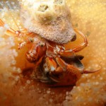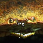 Sigten var ikke overvældende, men 2-3 m. er vel ok, her til lands. Vi svømmede den sædvanlige rute ud til vragets position, men så ikke vraget, da vi svømmede forbi det øv! Efter lidt søgen derude, begyndte vi at svømme ind igen og der var ikke så meget stort at kigge på, men meget småt liv til kameralinsen. På 9 m. vand ligger vi stille og nyder den lidt korte udsigt mellem de hyppige tågebanker og i venstre øjenkrog fremtoner pludselig en usædvanlig forhøjning i havbunden på ca. 15-18 cm. Og med en omkreds som en stor Stingray! Al vejrtrækning ophører omgående, jeg bliver nødt til at blinke et par gange med øjnene- kan det jeg ser virkelig lade sig gøre her i DK.!