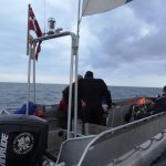 Nå, men det var blevet næste dag og jeg vil starte et stykke op ad formiddagen; Henrik og jeg havde sat båden i vandet og var ved at fylde den, da Kasper ringede og fortalte, at Thomas var havareret med sin nye bil og nu stod de to et sted i Trelleborg og hang med næbbet. Enden på det blev, at Henrik hentede Kasper – og så var de tre der var én der var to der var tre (syng med). Efter at Thomas på så uheldig vis var stemt hjem, drog vi andre afsted. Vi var naturligvis tyngede af den uheldige omstændighed, men man er vel kyniker og inden båden var oppe og plane havde vi glemt alt om det, strøget håret tilbage og stukket næsen op i vinden. Første vrag lå knap 30 sømil i sydøst, der var ingen anden vind end den vi selv lavede, men der var temmelig meget dønning, som fik båden til at åle. Et par hop ind imellem blev det også til, men det oplevede vi kun forfriskende, i den ellers monotone sejlads, i den times tid det stod på. En meget venlig svensk fisker, havde loddet vraget op for mig, så vi vidste positionen var sikker. Nu var så bare spørgsmålet, hvad var det som lå på positionen?