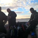 Eisfish, Stenfragteren og Mirs Vrag Langtur lørdag, så det var med at være hurtig på mailen, da turen blev annonceret, for pladserne er jo få, når vejret er godt! Nu går verden jo ikke i stå bare fordi der er en dykkertur, der er jo altid et eller andet sted, hvor man kan føle sig uundværlig, så til trods for, at jeg var den første, kom jeg alligevel sidst! Jeg var tidligt oppe ved svømmehallen for at toppe flaskerne, og derefter skulle jeg et smut forbi jobbet, for at gøre min pligt! Jeg var tilbage ved svømmehallen kl. 9:00, og min status var ændret fra duks til den der kommer for sent næsten! Vi kom af sted kort efter, men vi skulle først lige ha en snak med andetholdet, der skulle med gummibåden i Øresund. De skævede op på flaget ved svømmehallen, der blafrede lidt for lystigt i vinden. Jeg havde heller ikke set den friske vind i prognoserne, men det var måske kun inde over land, så vi troede (vi lærer det aldrig) stadigvæk på det! Turen til Gilleleje var lige så begivenhedsløs, som den var lang, men det er jo heller ikke så galt endda, for begivenheder på transportetaper er næsten altid noget med reparationer! I Gilleleje var vejret en anelse uldent, vi kunne sejle, men langfart blev det vist ikke til, så til PPPs store fortrydelse lod vi dunkene med ekstra benzin blive på land, men vi havde nok alligevel ikke haft plads til dem, for vi havde 3 biler fyldt med lort, der skulle stuves i vores lille båd. Når jeg ser Havgassen læsset til bristepunktet kan jeg ikke la vær med at tænke på overvejelserne om en ny RIB, der skulle øge vores aktivitetsniveau. INGEN Rib vil kunne ta udstyret fra bare 4 Havbasser, og slet ikke hvis de skal ha forplejning med! Vi kom af sted, og målet var Eisfish, hvor fiskelykken plejer at være ok, og denne dag var der flere mordere ombord! Turen derud var nogenlunde, selv om vi af og til blev sprøjtet til af en eller anden bølge, som PPP mente skulle ind i båden. Vi havde dragter på, så problemet var ikke stort, dvs Flemmings knægt, Philip, var nok ikke enig, for han havde kun alm. tøj på. Eisfish blev nået og loddet droppet på en halv times tid, og så gik der et tilsvarende tidsrum med at finde en, der gad binde på. Til sidst var Flemming nødt til at hoppe i vandet, for Philip havde næsten spist alt provianten, og hungersnøden truede lurede inden eftermiddagskaffen. PPP og Lotte hoppede efter. Måske ikke det bedste for sigten at slippe tre fiskere løs først, men sådan blev det.
