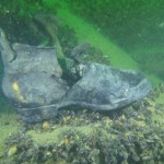 Vi aftalte at jeg nok var i vandet 45 min eller lidt mere og de andre nok var nået op inden da 🙂 Frygten til trods var det nu OK, det havde nok noget at gøre med tørhandsker, tykke inderhandsker, merino uldundertøj, og nå ja vel sagtens den stramme inderdragt. I hvert fald pludrede jeg rundt i 2-5 grader i ca. 40 minutter, før jeg frøs lidt om fingrene og hellere måtte vende kompasset mod bredden. Tiden var sjovt nok gået med at teste lidt nyt grej. Ny reflect i Twinled Cavelygtehovedet, ny inflatorløsning på rEvo’ens ilt side, en lånt model af Shearwater Predator Computeren. Med andre ord var alt ved det gamle og jeg tullede blot rundt og kiggede på de ret store flade, mens jeg testede div. grej.