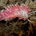 Det er jo længe lyst i slutningen af April, så selv med et mødetidspunkt klokken 16.30, var der takket være den korte sejltid udsigt til 2 dyk. Båden blev læsset og selvom det luftede noget, var det ikke så koldt som ventet. Ankommet til positionen var det også somom vinden aftog lidt og inden jeg var færdig med at klæde om, havde jeg virkelig fået varmen. Bøjen vuggede lidt frem og tilbage i bølgerne, så Thomas og jeg hoppede i vandet vel vidende, at strømmen ikke ville være den store udfordring. Normalt er bøjen jo her på stedet trukket halvt under vand af strømmen, men i dag nåede vi ned omkring 10 12 meter, før strømmen vendte os 180 grader og tiltog i styrke, så det ikke var nogen god idé at slippe tovet. Nå, men en del af opgaven på første dyk, var at binde på tæt på et sted hvor Henrik skulle ned og arbejde, på at fravriste vraget noget han mente var hans. Vi burde have løst opgaven bedre, jeg ved ikke hvad der gik galt, men