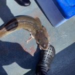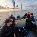 – ja jeg fik fanget et par tunger og havde alligevel et godt dyk. Overfladetiden gik med at drikke beholdningen af øl og Fernet Branca ned, til et niveau som var deleligt med fire. Det nåede Thomas og jeg lige akkurat, da en hævesæk brød Øresunds nu næsten stille overflade.