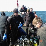 Tirsdags dyk på Robert Med god optimisme kørte jeg hjemmefra kl 16, skulle hente udstyr og møde i god tid i Farum. Ankom lige da badekaret trillede ud gennem bommen, så den var sikker.. Sidst ankommet. Brugte lige forpladsen til garagen til at hører vi skulle til Rungsted og vende bilen. Først i Rungsted fik jeg overblik over deltagerne på tirsdags dykket. Turen gik til Robert, Teddy med de største flasker bandt på, efterfulgt af Manley og Nicolaj med de mindste flasker. Dykkerplanen for de resterende lå ikke helt fast, men som Kim R tørt nok sagde: Planen er den jeg binder af Så var det op til os andre at dykke inden.