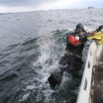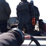 3 mand og Otto At vi kun kom 3 mand af sted, skyldtes formentlig delvis Manleys skræmmekampagne på havbassenettet; frygtelig og hensynsløs strøm lovede han, hvorefter en enkelt straks meldte fra på listen. Hvor mange andre som af samme grund undlod at tilmelde sig, ved jeg selvfølgelig ikke, men det var lidt synd vi kun blev 3 mand. Nå men vi som har erfaring med Farvandsvæsenets prognoser, trak på skuldrene, rullede engang med øjnene og tog af sted ved 14.30 tiden, planen var selvfølgelig 2 dyk og gerne en posefuld store tunger. I havnen var der trængsel, en større forsamling af tyske lystfiskere, var i færd med at fylde deres minibusser med fiskestænger og sild i tønder. De fleste var i en alder, så jeg har dem mistænkt for at have været her før, men i et helt andet ærinde. Endelig kom båden, – næh det var dykkertaxaen, de skulle af sted til Johannes L med kun 2 mand. Nå, men efter endnu nogle minutter, svingede Henrik, Kim og Havkassen ind på parkeringspladsen og snart var vi ude af havnen. Fra havnen så sundet fint og blankt ud, men så snart vi havde rundet molehovedet, kunne vi mærke dønningerne fra nord, så Havkassen huggede og vred sig, som kun den kan.