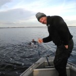 Triple dyk i Kattegat Efter endt tandlægebesøg og arbejde var planen, afgang fra Gilleleje med mødetid kl. 13. Marianne og jeg var klar ved 12:45 tiden og ventede med længsel på Jones og Anden med båden. Tænk sig at denne dag skulle være dagen hvor Pilegård var med på turen! Det kunne have været ret hyggeligt, men ak! Havgassen troppede også op med Henriette og Kasper foran sig, samt Asger i egen bil (ellers konens). 3 dykkere i gassen og 5 i Tornado = uligevægt, så selv om tilbuddet fra vores Skipper lød på frit valg til Pilegård, valgte han at sejle med gassen (meget mærkeligt). Med havgassens upålidelige Navigator, men dog med en medbragt håndholdt valgte vi at positionen skulle være Taifun (18 sm), så kunne gassen altid følge trop hvis de magtede de relative irriterende nordvestlige småbølger det viste sig at de gjorde. Ca. 30 min. efter afgang nåede vi positionen. Min hånd har det noget bedre og skyldte på kontoen, så jeg hoppede i vandet som først og derfor påbinder, lige inden jeg ramte overfladen så jeg havgassen nærme os med hastig fart. Turen nedad var fin og temmelig varierende i klarhed samt temp. De 32-33 m. blev nået, men det var heller ikke før 10 cm. fra vraget, at jeg kunne skimte noget der mindede om gammelt jern fuck en lortesigt. Jeg har aldrig oplevede en så elendig sigt, og påbindingen var i den grad vanskelig, jeg kunne ikke se noget som helst og det jeg kunne se, var ikke til at holde to både med. Efter ca. 7 min. kamp ankom Anden. Han viste ikke helt hvad og hvor hjælpen skulle sættes ind (forståeligt nok), jeg fandt til sidst rælingen og noget at binde fast i, der var nu gået 9 min. og så snart kæden var bundet blev der også strammet op heldigt. Jeg brugte efterfølgende 20 min. på at svømme vraget rundt for lige at finde ud af hvor jeg var, det viste sig at jeg havde bundet på ca. midtskibs tættere på stævn i styrbordside. Jeg havde medbragt harpun i håb om store friske torsk eller havkat, men med 10 cm. sigt vraget rundt, var det extremt begrænset hvad der blev spottet (både vrag og liv). Tilbage i båden med meldingen om skodsigt, forblev Henriette og Pilegård i gassen. Vi andre havde med rette haft et noget kedeligt dyk, men ét dyk