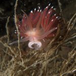 Fin nøgensnegl på vraget ved siden af en sønellike
