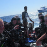 En tæt på beretning (men ikke så tæt på som de andre) Et hurtigt kig på vejrudsigten fredag eftermiddag og idéen var født, en lang dykkertur mandag var mulig. Det er jo lidt svært at skaffe folk på hverdage, især med dags varsel og når så mange kun prioriterer dykning som nummer 2 eller 3. Men ovre i Lund har vi fundet en ny legekammerat og Johan takkede straks ja. Ankommet i garagen, diskuterede vi dykkemål, benzinregnskab og påfyldning i én pærevælling, mens Henrik fyldte på fra dunke. Lige da samtalen faldt på et vrag af stor interesse for Henrik, bøvsede tanken og samtalen fortsatte omkring vraget, mens han pakkede slange og dunk væk. På med krogen og ned til Johan som ventede i Smygehamn, pakke båd som så ofte før og så af sted. Vi nåede dog lige at hilse på Flemming, som var nået frem før Havgassen og de andre, som skulle på Undine. Efter at have sejlet i ca. 45 minutter, eller 2/3 af de godt 30 sømil til vraget, faldt mine øjne på én af bådens mange målere. 78 liter, stod der. Jeg spurgte Henrik, om der var 78 liter tilbage, eller om vi havde brugt 78 liter allerede. Henrik stivnede og blev underlig i blikket, imens han trykkede adskillige gange på knapperne, så displayet viste forskellig data. Hmmm, jeg tror der er 75 liter tilbage (alt imens han undersøgte sagen havde vi brugt 3 liter), sagde han og tog gassen lidt af. Vi kiggede nu på hinanden og blev enig om, at vi ikke havde tanket efter en tur på Undine ugen før og at der derfor burde være fyldt meget mere på tanken, end de 25 liter, inden den havde bøvset som om den var fuld. ØV!