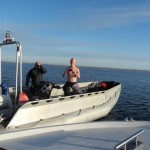 Otto Der skal åbenbart ikke være mange krusninger på vandet, før dykkerturen bliver til morgenkryddere og søndagsavis, og guder skal da vide, at det ikke var den bedste vejrudsigt, men på den anden side, det har det jo ikke været det sidste halve eller hele års tid! Hvis man vil i vandet må man ta chancen en gang imellem også selv om komforten nogle gange bliver kompromitteret en smule. Denne gang var vi så heldige at Henrik Jensens båd kom til klubdyk, og den er ulige meget mere komfortabel end Havgassen, når der er lidt bølger og frisk vind. Vi var 3 personer, der magtede at trodse elementerne, nemlig Steffen, Henrik og undertegnede.