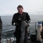 Hjuldamper CimbriaNu kan det godt blive en smule trivielt når at skrive beretninger fra de samme slags ture og mine indledninger kan ofte blive en smule monotone, så derfor vil jeg spare krudtet på logistik og forventninger til vejrmeldinger og gå direkte til sagen.Stagene klaprede mere end forventet på Helsingør havn og en tur på Otto eller andre vrag mod nord lignede en fiasko og det blev det også. Vi sejlede i fladt vand indtil en halv sømil fra Otto, da vi i det fjerne kunne se søerne brække ned fra NV. Vi sejlede durk ind i de store bølger, som materialiserede sig ud af det blå, da der var frit løb ned gennem Sundet og en modgående strøm der tiltog efter det smalle gennemløb. Vi vendte skuden da det slet ikke var aktuelt at ankre op i den sø, ja selv vendingen og søerne ind agter fra kom lidt bag på mig. En halv mil længere mod syd var der igen smult vande og vi blev enige om et dyk på Cimbria og jo tættere vi kom på positionen jo bedre blev forholdene. Ikke havblik, men ingen nævneværdig sø eller strøm og solen varmede faktisk.
