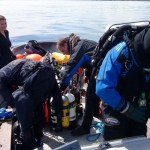 Hygge på en fredagJa, som alle jo har luret har vejret jo de sidste mange dage jo ikke lige været til dykkerture, men da Allan slog en tur op, var jeg da klar til at tage fri nogle timer, så jeg kunne komme med! Herligt :0).Og som den kloge kan tænke sig, så kom jeg jo sidst igen, og de andre var klar og hjælpsomme. Besætningen bestod af skipper (Allan J ), Flemming, Steen, Anders (and), Kenneth og Kasper. På vej ud af havnen så vi, hvad Bodil havde lavet af ballade, og det var ikke så lidt. Der skal nok en tømrer eller to ud og lave lidt .