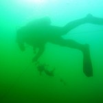 WaweVi skulle mødes ved Mullerup havn lørdag d. 13. april kl 8.30, så det var tidligt op. Der var omkring 200 m sigt grundet tåge ud over havneløbet. På vej indløb der flere sms fra Henrik om, at mødetiden var udsat, men til sidst ankom Henrik med Rune og båd. Tågen lettede og så gik kursen mod Wawe på dejligt fladt vand.Da Henrik selv skulle binde på, blev der gjort ekstra meget ud af at finde præcis den rigtige spot at smide ankeret (vi bruger nu et lod for ikke at ødelægge vragene!red.), for der er jo ingen grund til at svømme unødigt rundt, vel? ;-)Nåh, men vi andre bandt båden fast, da vi så Henriks bobler suse i overfladen langt fra bøjen, så Wawe var allerede i gang med at blive undersøgt.