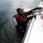 Trykkerdammen – endnu en gang! Det var tirsdag og trafikken på mailen fjernede ethvert overblik over, hvor mange, hvorhen og hvordan dykningen skulle foregå. Tilsyneladende ville det ende med en jagttur med gummibåd og en vragtur med Havgassen.   Jeg mødte ved 17-tiden ved svømmehallen, og var helt alene. Det undrede mig noget, for der var en del tilmeldte, og selv om der var en del vind, så kunne man vel altid snige sig ud på et eller andet kystnært. Hvorom alting er, så et opslag på mailen viste, at man var taget til Humlebæk i stedet for Nakkehoved, og ved Humlebæk var der heller ikke nogen havbasser. De var taget til Trykkerdammen…
