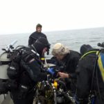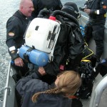 S. S. Themis Hundested og vraget af Themis var ikke den først udsete destination for dagen det var såmænd Undine i Østersøen (igen-igen), men logistikken gik ikke op og afgangstidspunktet ville blive lige lovligt sent til sådan en tur, så endnu en gang måtte vil vælge hende fra. Men vi var trætte af den dårlige sigt, vi har oplevet i Øresund og den østlige del af Kattegat i den sidste tid, så vi enedes om at sejle fra Hundested. Der var også, mere eller mindre, enighed om, at Libra ikke behøvede vores besøg på denne tur, så vi skulle finde på noget andet. Og gerne et sted, hvor vi kunne sikre middagsmaden. Da Steffen og undertegnede nåede Hundested lå Havgassen allerede i vandet, og Juhl og Thomas sad ved et bord og ventede på os så hvis der kommer fartbøder til Havkassen, så tror jeg det er der, vi skal finde synderen…Vi fik smidt det sidste grej i båden, men det var lummervarmt, så ingen havde lyst til omklædning før sejlturen, men vi ville jo også helst være tørre. Men dykkere er som bekendt ikke bange for vand, så vi sejlede som vi var, dvs. vi skulle lige have startet motoren, og det var ikke nemt, og slet ikke når der er så mange kloge om den samme opgave. Men sammen er vi stærke, og til sidst gav motoren efter for vores anstrengelser med choker, håndgas, dødemandsknap og benzinpume og startede i året største røgsky.