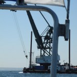 Vi skulle ha’ været en lille tur i Sundet, men strømmen var ikke gunstig, så derfor var der en eller anden, der mente, at Kattegat ville være bedre. Om det var bedre, får vi nok ikke svar på, men det var da ok, uden på nogen måde at være prangende. Udturen var med vind og sø i ryggen, og gik egentligt ok. Vraget var ikke det letteste at slå, men til sidst blev loddet smidt op ad styrehuset, og så havde man en chance for at finde tilbage til tovet, der stod inde midt i den skrotbunke, der udgør vraget.