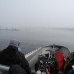 Fra Ølsted til Smygehamn via. Kokkedal og så var vi fremme først på formiddagen. Der var endnu ikke dukket nogen båd op – men Dennis’ hue, som han havde glemt weekenden før, lå stadig ved slæbestedet, så der var et glædeligt gensyn. Vi fik samlet grejet halvt, inden Kim og Henrik med båd dukkede op. Der var vist kun 2 vrag der virkelig var på tale denne formiddag, Undine og Wacht. Med en spejlblank Østersø satte vi kursen 36 mil mod syd for først at se nærmere på sidstnævnte vrag.