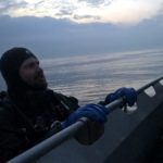 bord. Efter vi alle have iført os tørdragter sejlede vi fra land.