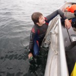 På trods af en formidabel vejrudsigt, var der ikke mange, der kunne lokkes med på tirsdagsdyk. Om det var fordi vandet endnu ikke er alt for varmt eller fordi det var for meget strøm ved Helsingør må være usagt, men vi endte med at være tre dykkere og Jørgen som bådfører.