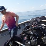 På trods af en formidabel vejrudsigt, var der ikke mange, der kunne lokkes med på tirsdagsdyk. Om det var fordi vandet endnu ikke er alt for varmt eller fordi det var for meget strøm ved Helsingør må være usagt, men vi endte med at være tre dykkere og Jørgen som bådfører.