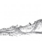 Hvis det ikke var fordi, vi havde en aftale, var der vidst ikke nogen, der var mødt op. Vi var trods alt i læ for den friske vestenvind, men det regnede, og havde gjort det længe, og var i det hele taget en noget trist udsigt.
