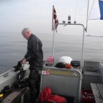 Det blev lørdag, vindstille og tåget. Heldigvis skulle jeg lige forbi idrætshallen med ungerne, så tågen kunne lette lidt inden vi mødtes i Gilleleje og stak kursen mod Eisfish.