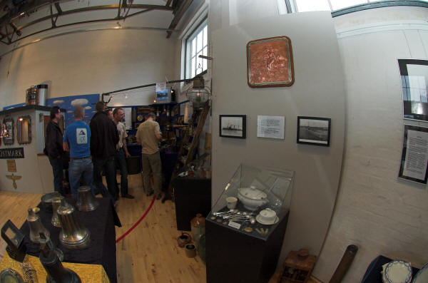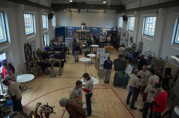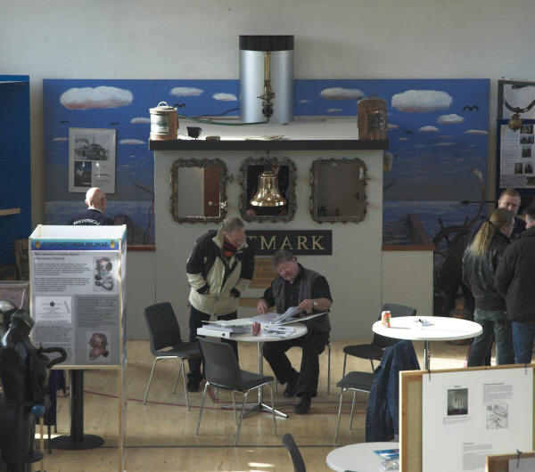 Nu kunne udstillingen begynde, det var lidt småt med besøgende i starten, men i løbet af dagen nåede det op på 145 betalende gæster. Nu kan jeg fortælle dem som ikke har deltaget på vragudstillinger, at det at se hinandens ting og vise dem frem for unge og gamle, kun er en lille del af det det handler om. Der bliver udvekslet historier af alle slags (men mest vragdykning), der bliver udvekslet vragpositioner og telefonnumre, tegnet skitser og aftalt fremtidige ture. Der hersker i det hele taget en meget åben stemning og vil man vide noget om mulighederne for vragdykning ved Sønderborg, Hanstholm, Skagen eller Langeland, så er det her det foregår. Det være sig både viden om vragene, men også konkrete aftaler om overnatning og sejlads med gæsterne til de ønskede vrag.