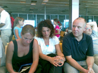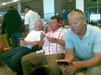 Da vi landede var der god (!) service i lufthavnen, dels gik det uventet smertefrit gennem visa og paskontrol, rejseselskabet havde styr på det hele og smurt de rigtige. Og dels skulle hverken Mads eller Gobo selv tørre op efter deres smadrede flasker. Mads viste sig som rutineret Rødehavsfarer og stormede ind i den toldfrie efter en ny flaske.