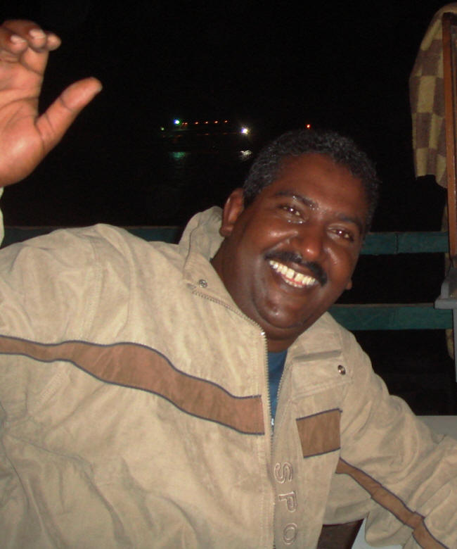 Efter maden stod Stella for underholdningen for dem, som kunne holde sig vågne. Gobo og Søren genkendte i øvrigt kaptajnen, altså skibets, det var Kaptajn Hussein fra ”Lady Somaya”. Han genkendte også ”The Danish Sharklifting Team”. Han skulle senere vise sig at være et gennemgående morsomt bekendtskab, ikke altid frivilligt, men ofte med Gobo’s hjælp. Gobo genså Eddie Murphy i ”Coming to America” hver gang han så kaptajnen og skraldgrinede på en smittende måde. Og Kaptajnen lignede grangiveligt, når han smilede, hvad han stort set altid gjorde!