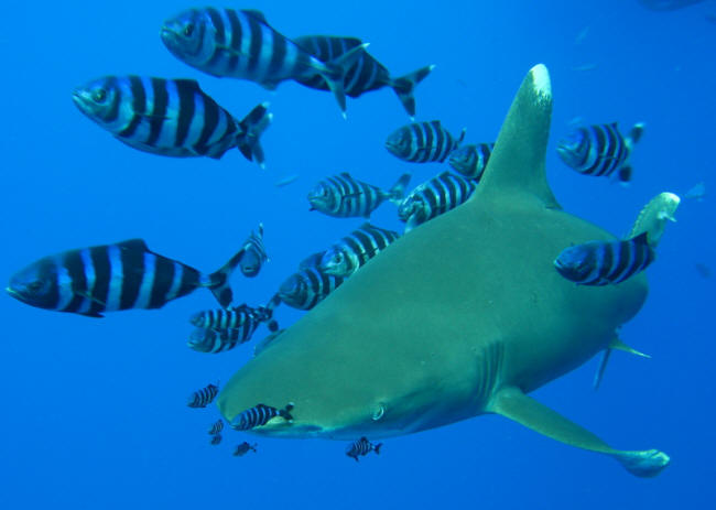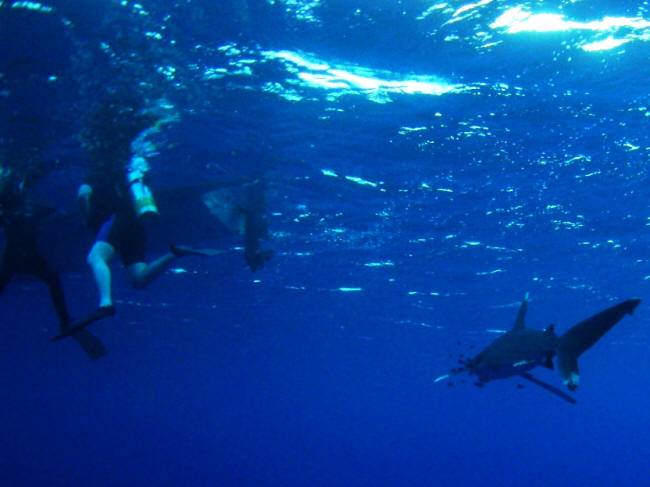 havde set rævehajer, skildpadde og Oceanic whitetip.