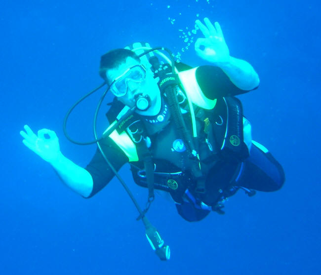 Smertefrit dyk for alle, vist nok! Gobo fik monterede sin tøjdyr på alle intetanende dykkere i nærheden, men han havde den dog selv med op. Der blev set krokodillefisk, dragefisk og blåplettede rokker, og selvfølgelig det meste af det vi plejer at se på et tjekdyk (lavt vand og sandbund).