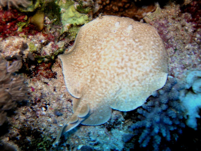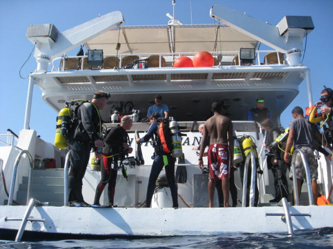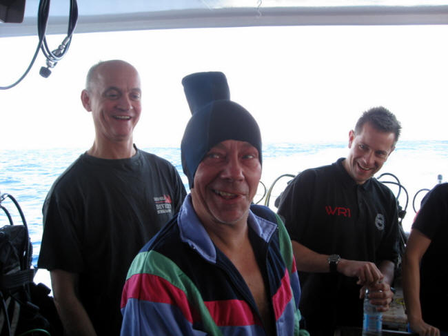 Kil. 06:30 var der dykning, og denne gang var det fra båden, med mulighed for en taxa hjem. Vi var ikke længere alene på revet, så det svarede nærmest til at dykke i en jacuzzi. Af interessante ting kan nævnes en blæksprutte og en stor Oceanic whitetip, der jog Gobo og Carsten op i båden. Barbara havde skjulte evner og kunne gå på vandet med udstyr på, ja hun nærmest løb nærmest op i gummibåden, da hun hørte om den store haj.