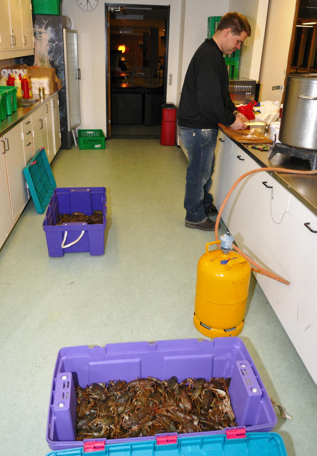 Udstillingen foregik denne gang på Marie Kruses Skole i Farum lørdag d. 23. februar fra kl. 10 - 18. De 15 udstillere og de 3 sponsorer haft adgang til lokalet fra fredag eftermiddag, og i løbet af fredag aften var de fleste på plads. Det største problem under opbygningen af udstillingen var strømmen og HFI-relæet, der slog flittigt ud i starten. Årsagen til problemet blev dog fundet (pølseristeren), repareret og strømmen var herefter stabil. I køkkenet foregik samtidigt grufulde ting, klubbens eneste rigtige spejder begik massemord på en invasiv art, der, sammen med en dildkvist, skulle udgøre forretten. Forretten skulle jo helst ha’ tid til at hygge sig i lagen inden serveringen, og kunne derfor med fordel laves i god tid! Der var heldigvis gasblus, så de elektriske udfald havde ingen indflydelse på kogningen af krebsene.