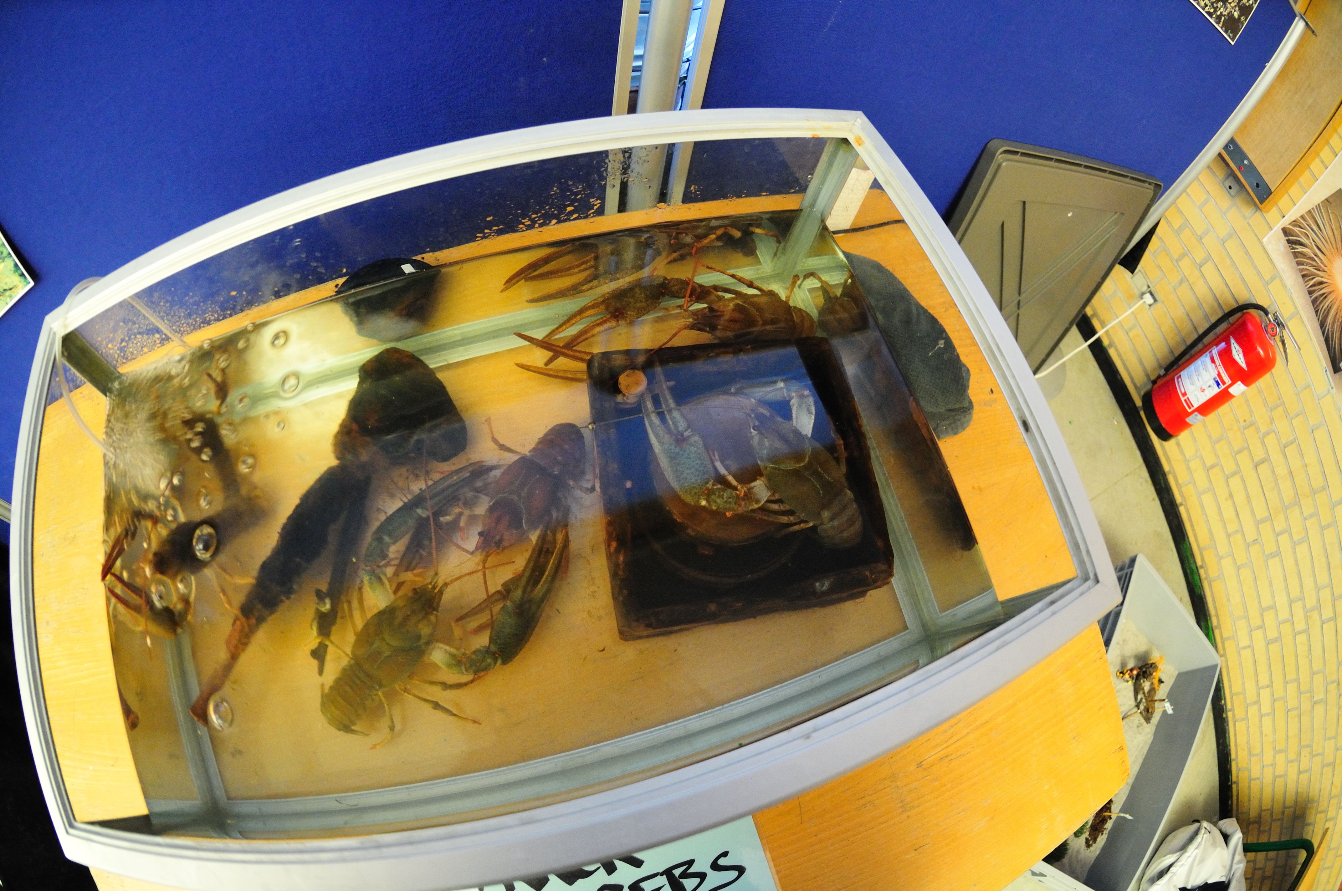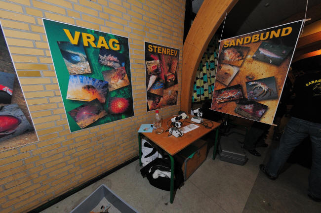 Der var i år 3 sponsorstande, ScubaGear, Claus Drescher/Otter Danmark og Bay Kompressorer - Tak for støtten! - og 15 udstillingsstande. Flere af standene vakte gensynsglæde, og på andre blev fine nye fund præsenteret. Biologistanden fungerede gennem hele udstillingen som barnepige for de besøgende, eller rettere, for deres børn. De kunne pille ved nogle krebs, og der var ingen der sagde, at de ikke måtte lege med maden! Akvariet, som krebsene gik i, blev samtidigt brugt til at udvande et kronometer fra en af de andre udstillere, så der var også lidt vrag på den stand.