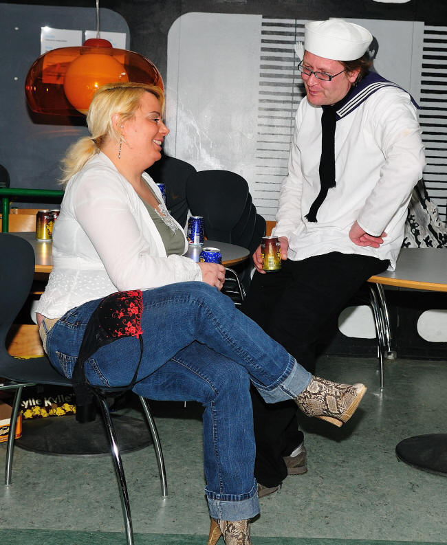 Udstillerne blev efterhånden færdige med at pakke ud og stille op, og der faldt en eller anden form for ro på drengene. Tid til øl, pizza og løgnehistorier, mens der blev ventet på den svenske delegation. Svenskerne var sent på den, og kom først i nattens løb, men da udstillerne kunne overnatte i lokaler på skolen, så der var alligevel nogen, der var længe oppe.