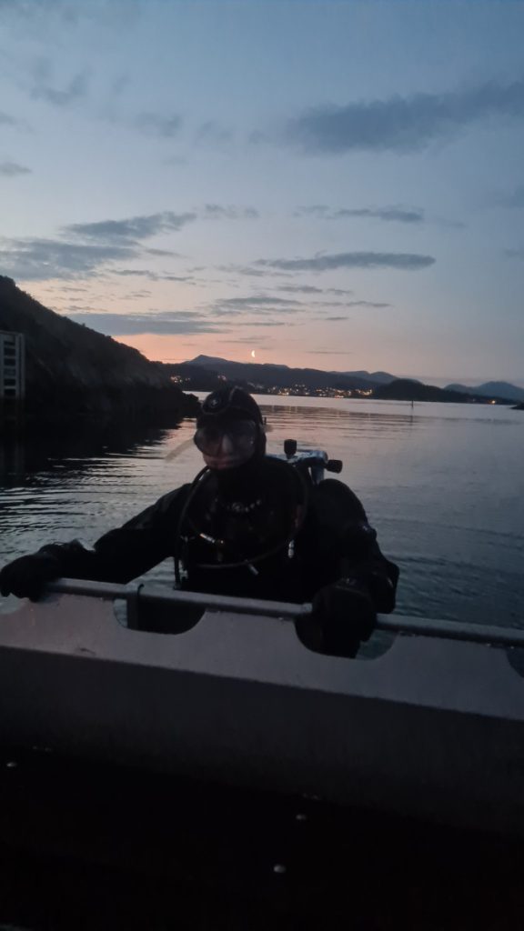 Det endte med at være mørkt på natdykket, selv om tusmørket knap var indfundet ved start.