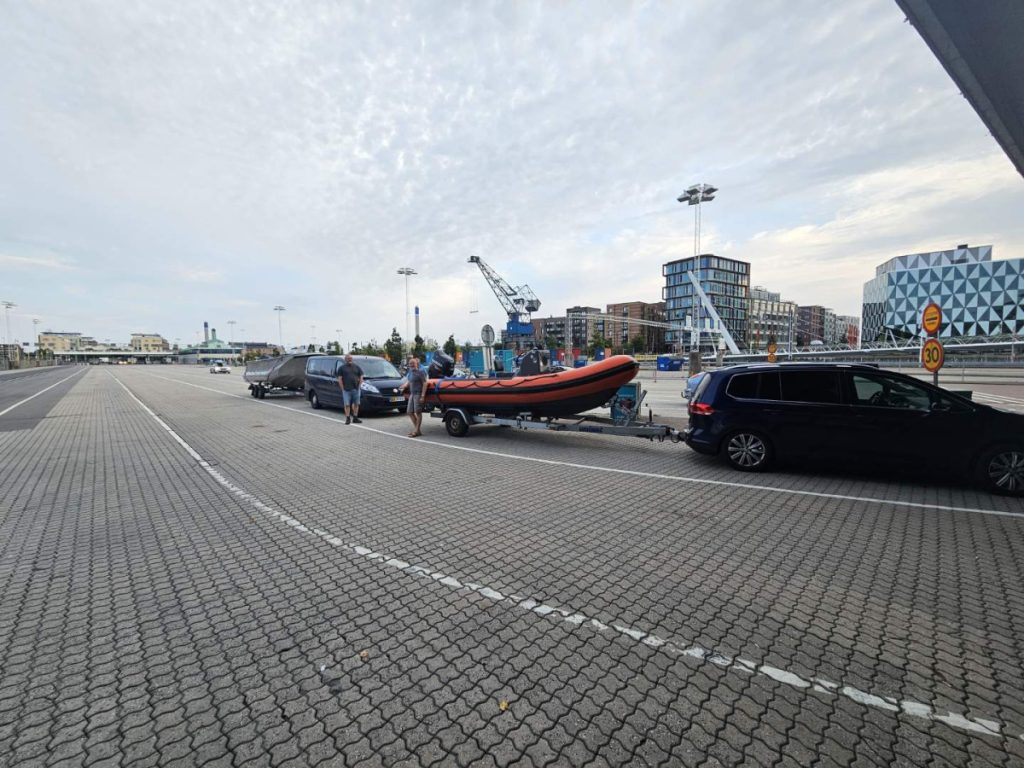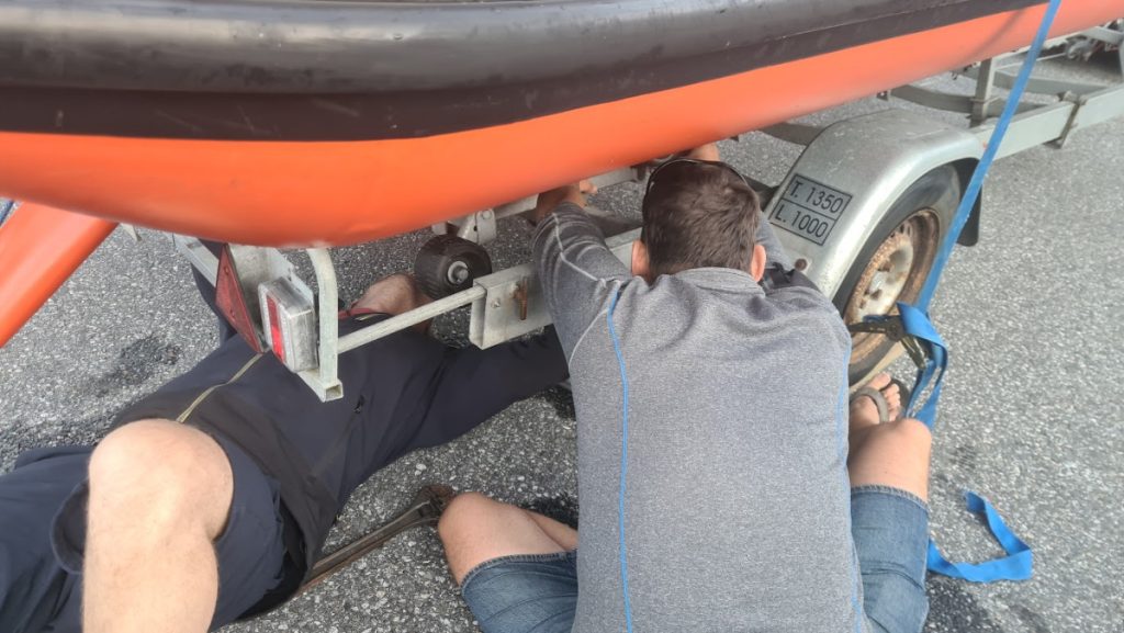 Da dykningen var overstået skulle bådene hales på land, det skete i den nærliggende marina, hvor traileren til Havskum lige fik finjusteret rullerne.