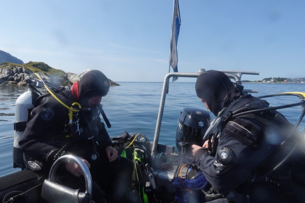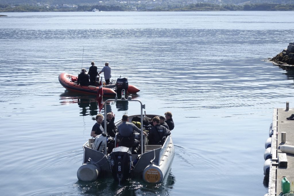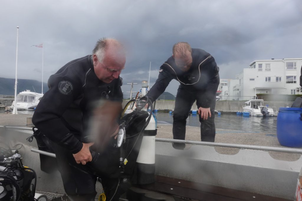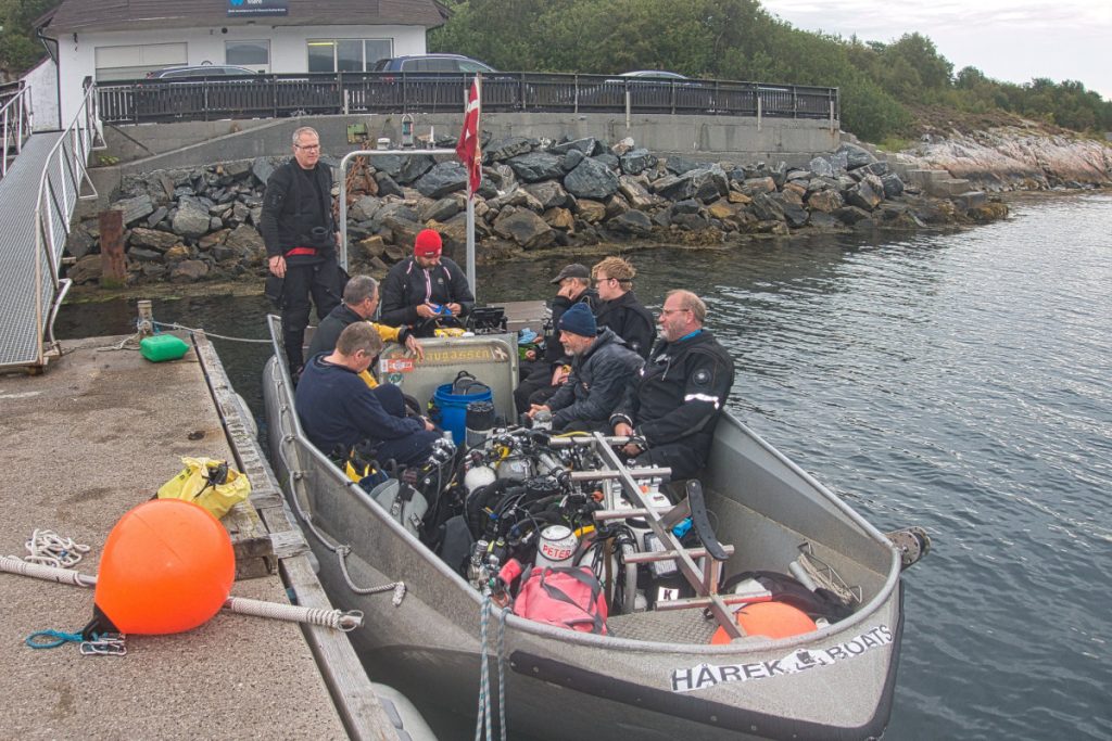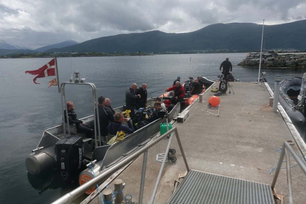 Endnu en gang frokost og klargøring til andet dyk, som gik til Kveiteskær, hvor de norske værter havde lavet en helt ny pontonbro til os. Nu kan vi ligge der i alt slags vejr, og tilmed sætte os op på bænken på land. Sigten var ikke god ned til ca. 25 meter, men derefter klarede det op og blev krystalklart! Der blev fanget en håndfuld kammuslinger, et par rødspætter, set blæksprutter, havkat og meget andet