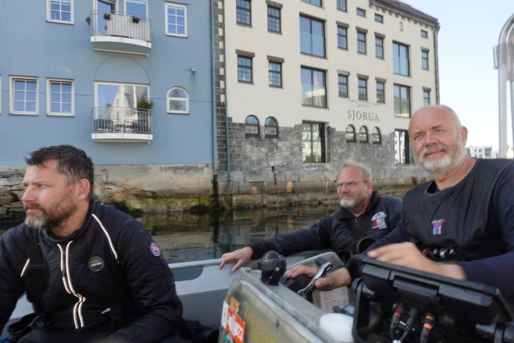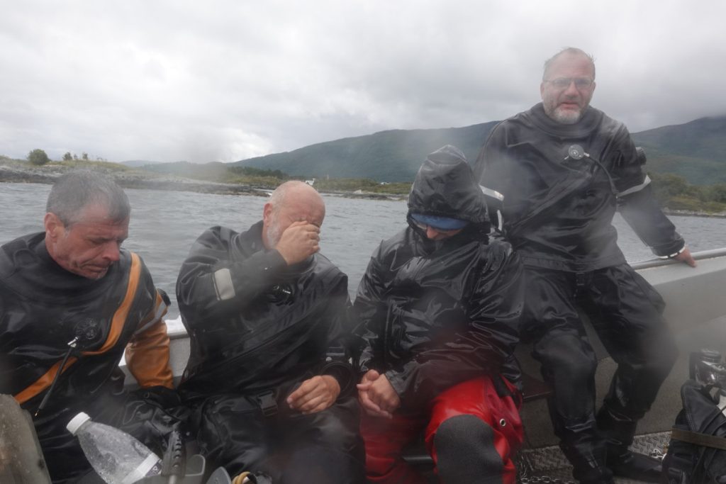 De sidste dykkere på vraget, der skulle binde af var Thomas, Kasper, Steffen, Juhl og Kim. Helt alene i Havgassen med et formidabelt vejr, så vi øjnede chancen for en kold fadøl i Ålesund på en af de beværtninger, der serverede ud mod vandet – men ak, der var ikke servering længere… Således skuffede måtte vi finde de sidste lunkne øl frem og en håndful halvvarme Underberg for lige at trøste os over at der ikke var flere dyk på denne tur.
