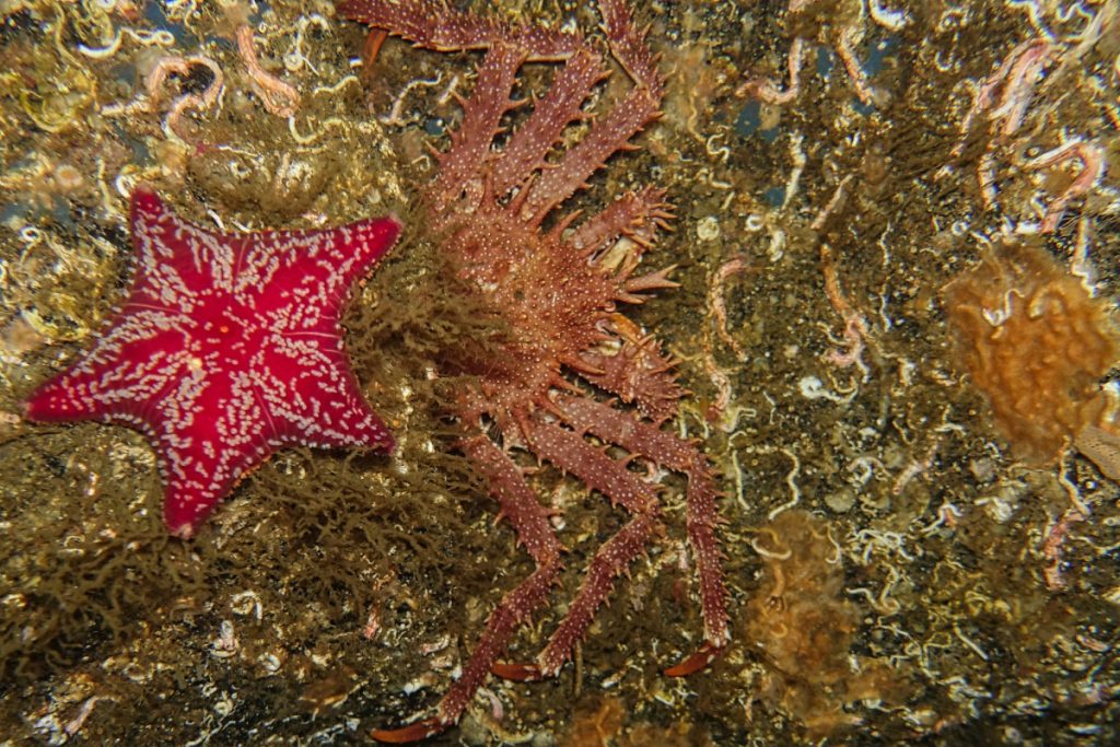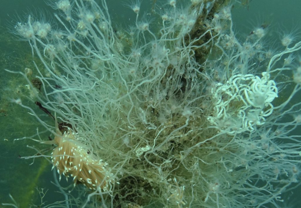 Den lodrette klippevæg imponerede som altid med det rige fiskeliv på det lave, bevoksningen med dødemandshånd næsten ved overfladen og absurde mængder af hvid hornkoral i dybet (80 m+). I dekozonen var der store stimer af sej, mest de mindre modeller, men de kunne så være inden i de store modeller, der hapsede løs.