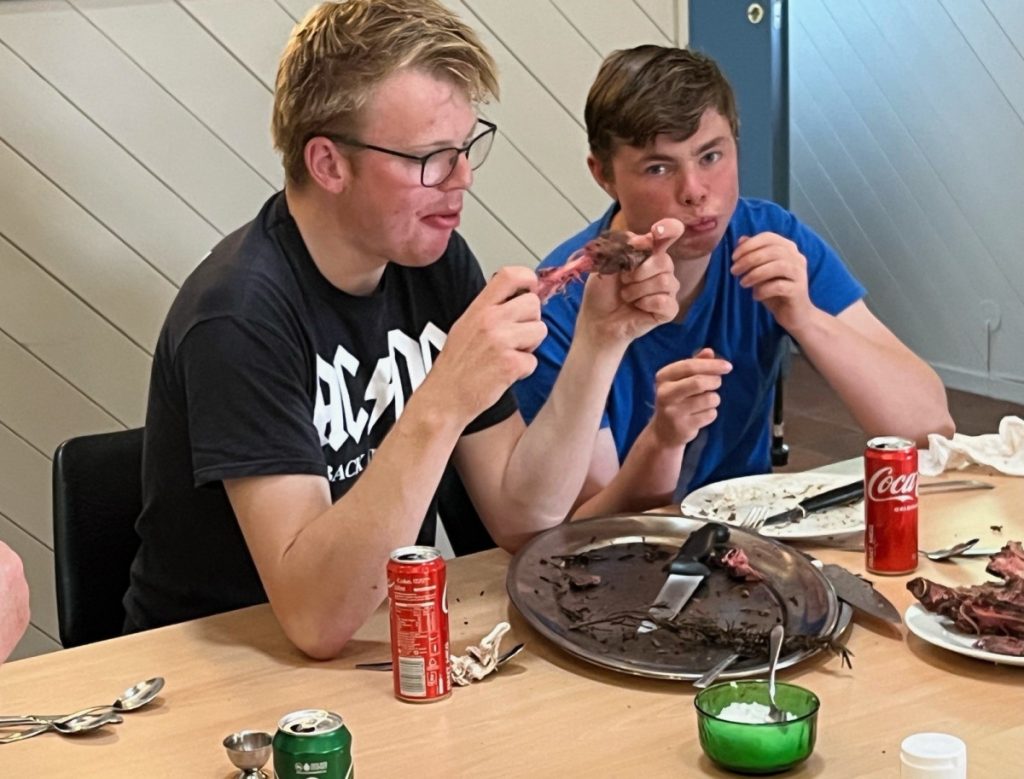 Dagens middag var Peters dyrekød og røgede kammuslinger. Og som en jysk kulinarisk overraskelse fik vi røgede kartofler – alt sammen meget velsmagende!