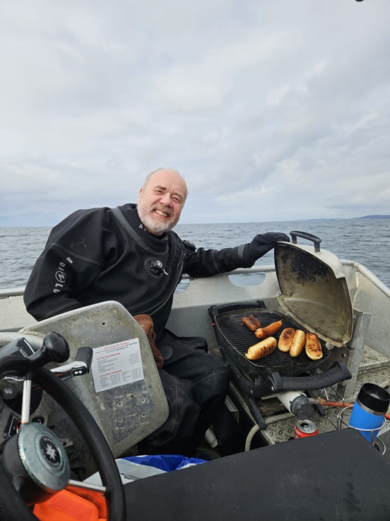 Som sidst ankommende blev jeg udvalgt som skribent. Da jeg kom viste det sig, at stilstand i sin hobby bare er skidt for materiellet. Manglende luft i dækkene samt bremser der hang, men alle var dedikerede, så det blev klaret og afsted mod Helsingør hvor valget blev Otto. To dyk var tanken, dog skulle vi imellem dyk og pølser tilbage i havn og hente Kim, samt sætte grillmesteren (Kasper) af, da han havde en anden aftale inde i den store stad.