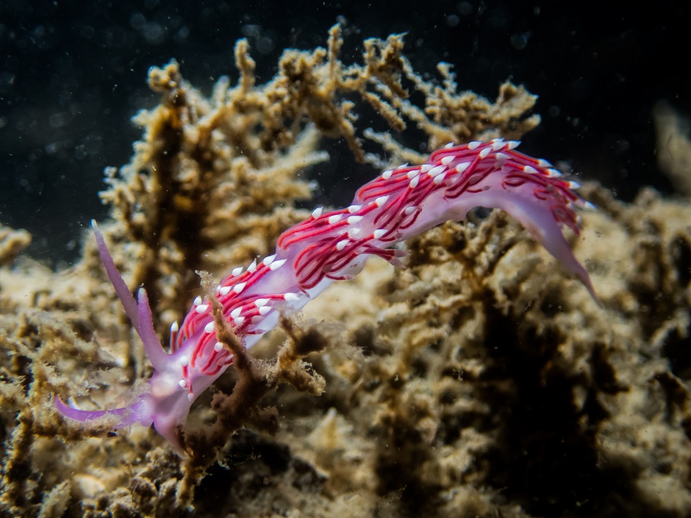 Vraget var fyldt med garn og sigtbarheden var ikke noget at råbe hurra for, men til gengæld var der masser af nøgensnegle at vælge imellem. Vi kom op af vandet. Vejret var efterhånden blev rigtigt flot, og vinden havde lagt sig. Henning og Kenneth kom i vandet og fik bundet af