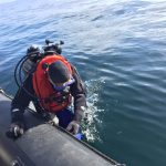 En tæt på beretning (men ikke så tæt på som de andre) Et hurtigt kig på vejrudsigten fredag eftermiddag og idéen var født, en lang dykkertur mandag var mulig. Det er jo lidt svært at skaffe folk på hverdage, især med dags varsel og når så mange kun prioriterer dykning som nummer 2 eller 3. Men ovre i Lund har vi fundet en ny legekammerat og Johan takkede straks ja. Ankommet i garagen, diskuterede vi dykkemål, benzinregnskab og påfyldning i én pærevælling, mens Henrik fyldte på fra dunke. Lige da samtalen faldt på et vrag af stor interesse for Henrik, bøvsede tanken og samtalen fortsatte omkring vraget, mens han pakkede slange og dunk væk. På med krogen og ned til Johan som ventede i Smygehamn, pakke båd som så ofte før og så af sted. Vi nåede dog lige at hilse på Flemming, som var nået frem før Havgassen og de andre, som skulle på Undine. Efter at have sejlet i ca. 45 minutter, eller 2/3 af de godt 30 sømil til vraget, faldt mine øjne på én af bådens mange målere. 78 liter, stod der. Jeg spurgte Henrik, om der var 78 liter tilbage, eller om vi havde brugt 78 liter allerede. Henrik stivnede og blev underlig i blikket, imens han trykkede adskillige gange på knapperne, så displayet viste forskellig data. Hmmm, jeg tror der er 75 liter tilbage (alt imens han undersøgte sagen havde vi brugt 3 liter), sagde han og tog gassen lidt af. Vi kiggede nu på hinanden og blev enig om, at vi ikke havde tanket efter en tur på Undine ugen før og at der derfor burde være fyldt meget mere på tanken, end de 25 liter, inden den havde bøvset som om den var fuld. ØV!