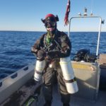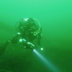 En rigtig sommertur Der var opslået ikke mindre end 3 ture i løbet af ugen, men de lugtede alle af at blive på stenfragteren, mirs vrag og lignende, hvilket kan være udmærket, men vi var 4 Havbasser med indebrændt udlængsel, som valgte en anden vej. Som så ofte før mødtes vi i Kastrup, omlastede bilerne og drog østpå til vi havnede i Smygehamn. Henrik og jeg nåede at tanke benzin, laste båden og enes om dagens dykkemål, før Thomas og Kasper dukkede op. Kursen blev sat VSV, på et af os endnu ukendt vrag 19 sømil ude. Vraget tegnede sig efter kort tids søgen på sonaren og syntes betydeligt større, end fiskeren jeg fik det af havde oplyst. Dybden var 46 meter og vraget loddede godt 3 meter op og havde stor udbredelse, det er noget mere end de 3-4 nye trævrag vi fandt i 2008, så det tegnede rigtig godt.