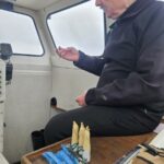 Eisfish, Stenfragteren og Mirs Vrag Langtur lørdag, så det var med at være hurtig på mailen, da turen blev annonceret, for pladserne er jo få, når vejret er godt! Nu går verden jo ikke i stå bare fordi der er en dykkertur, der er jo altid et eller andet sted, hvor man kan føle sig uundværlig, så til trods for, at jeg var den første, kom jeg alligevel sidst! Jeg var tidligt oppe ved svømmehallen for at toppe flaskerne, og derefter skulle jeg et smut forbi jobbet, for at gøre min pligt! Jeg var tilbage ved svømmehallen kl. 9:00, og min status var ændret fra duks til den der kommer for sent næsten! Vi kom af sted kort efter, men vi skulle først lige ha en snak med andetholdet, der skulle med gummibåden i Øresund. De skævede op på flaget ved svømmehallen, der blafrede lidt for lystigt i vinden. Jeg havde heller ikke set den friske vind i prognoserne, men det var måske kun inde over land, så vi troede (vi lærer det aldrig) stadigvæk på det! Turen til Gilleleje var lige så begivenhedsløs, som den var lang, men det er jo heller ikke så galt endda, for begivenheder på transportetaper er næsten altid noget med reparationer! I Gilleleje var vejret en anelse uldent, vi kunne sejle, men langfart blev det vist ikke til, så til PPPs store fortrydelse lod vi dunkene med ekstra benzin blive på land, men vi havde nok alligevel ikke haft plads til dem, for vi havde 3 biler fyldt med lort, der skulle stuves i vores lille båd. Når jeg ser Havgassen læsset til bristepunktet kan jeg ikke la vær med at tænke på overvejelserne om en ny RIB, der skulle øge vores aktivitetsniveau. INGEN Rib vil kunne ta udstyret fra bare 4 Havbasser, og slet ikke hvis de skal ha forplejning med! Vi kom af sted, og målet var Eisfish, hvor fiskelykken plejer at være ok, og denne dag var der flere mordere ombord! Turen derud var nogenlunde, selv om vi af og til blev sprøjtet til af en eller anden bølge, som PPP mente skulle ind i båden. Vi havde dragter på, så problemet var ikke stort, dvs Flemmings knægt, Philip, var nok ikke enig, for han havde kun alm. tøj på. Eisfish blev nået og loddet droppet på en halv times tid, og så gik der et tilsvarende tidsrum med at finde en, der gad binde på. Til sidst var Flemming nødt til at hoppe i vandet, for Philip havde næsten spist alt provianten, og hungersnøden truede lurede inden eftermiddagskaffen. PPP og Lotte hoppede efter. Måske ikke det bedste for sigten at slippe tre fiskere løs først, men sådan blev det.