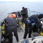På trods af en formidabel vejrudsigt, var der ikke mange, der kunne lokkes med på tirsdagsdyk. Om det var fordi vandet endnu ikke er alt for varmt eller fordi det var for meget strøm ved Helsingør må være usagt, men vi endte med at være tre dykkere og Jørgen som bådfører.