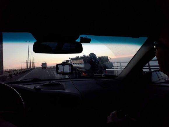 Med solen på vej op kørte vi fra Farum med retning mod broen, så vi kunne komme til Smygehamn.